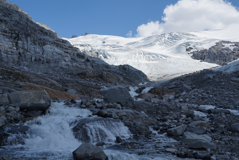 I sat and snacked on seaweed and chips for over an hour, talking briefly to tourists and taking some photos for people. I could see the entirety of my route stretched out in front of me. Mostly I think I was scared to put my blistered feet back in my boots. After some time I stuffed my stumps back in and headed down the glacier to horror of many people. I picked up the trail quickly after saving a few hundred meters of rocky descent.