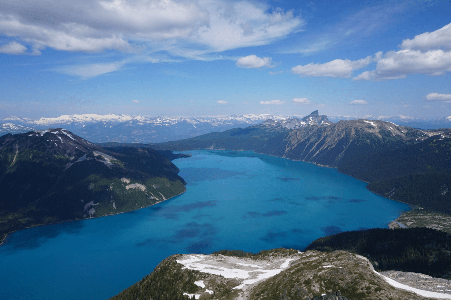 The views are fantastic and the solitude is much preferred to the chaos across the lake. Mount Garibaldi and The Table are particularly striking. The view over the lake is stunning, as it is from every angle.