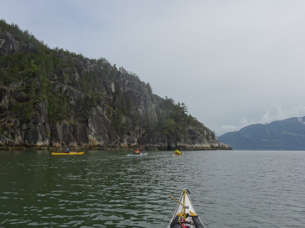 The polished granite is gorgeous as you paddle the final kilometers into Squamish, and even in the clouds, the views of The Chief and Shannon Falls are breath-taking.