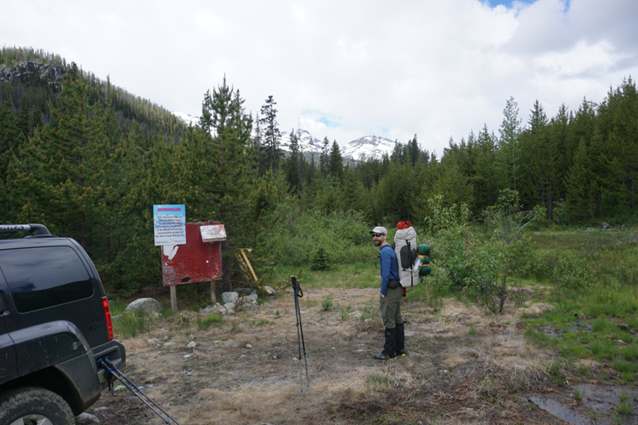 We left Whistler at the relatively luxurious time of 630 and made good time over the Hurley to Gold Bridge, finding the turn off for the FSR with ease. Road access is marvelous at the moment (Summer 2020), and we were able to drive the entirety of the Slim Creek FSR to the “Trailhead” at 1600m; a few kilometers past the bridge over Slim Creek.