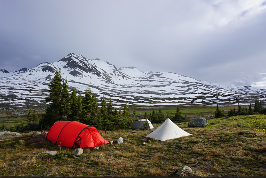 We each had a solo tent and then a large three-person tent as a dinner tent. We made a hasty dinner, gazed in awe at the amazing terrain around us, hung 30 lbs of food, and promptly fell asleep.