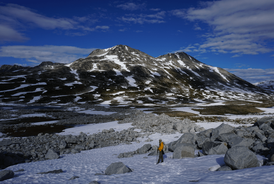 The following morning, we didn’t bother setting the alarm and slept late, waking to unsettled weather. We lazed around camp, putting the final touches on our home for the next seven days. We had both had a lazy spring and we were tired from the day before. By mid-morning we decided that despite the lousy weather, we should at least head up the closest bump to camp.