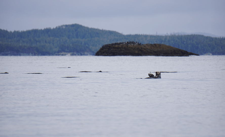 We made our way down Browning towards Queen Charlotte Strait. The rain increased from showers and a dive boat passed us. As we passed the small islets halfway down Browning, the first signs of swell snuck in and greeted us. Sea otters became frequent companions and we weaved our way through kelp gardens and rocky islets.
