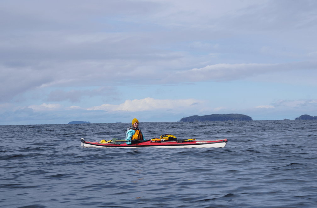 We cruised down the coast, paddling past the Masterman Islands, which we’ve previously visited as a good quick pull out at low tide. Waving to a couple of people out fishing as we crossed Hardy Bay, we stopped to float as we observed a humpback whale swimming in the opposite direction.