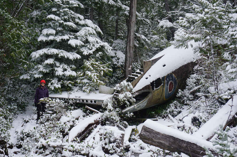 The Dakota 576 crash site between Fort Rupert and Port Hardy on a wintery day in February 2021.