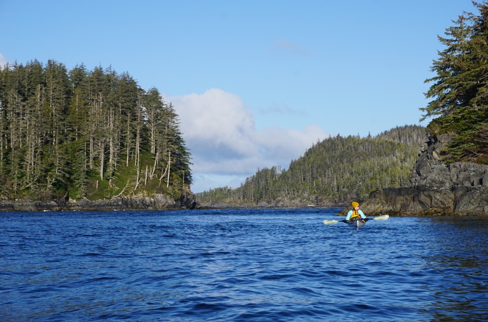We cruised down the coast, paddling past the Masterman Islands, which we’ve previously visited as a good quick pull out at low tide. Waving to a couple of people out fishing as we crossed Hardy Bay, we stopped to float as we observed a humpback whale swimming in the opposite direction.