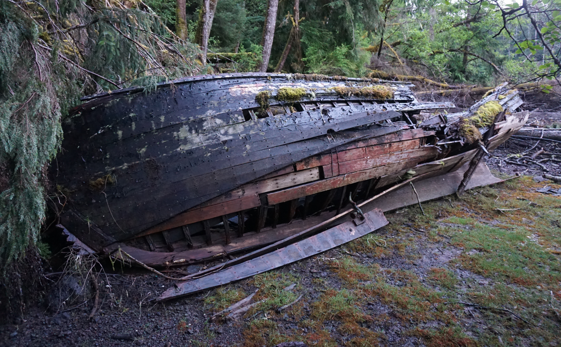 This is the site of Frigon’s Hotel which operated on Drake Island in the late 1890s and early 20th century. Much more interesting history about Drake (and many more North Island subjects) can be found here: Undiscovered Coast. This site is connected via rough trail to the BCMT signpost we had just paddled past. There is easy access to the forest, but windfall has made many of the trails challenging to follow (I believe this has been cleaned up as I brought it to the attention of BCMT). We chose to pitch our tent near a mossy bluff on the islets, figuring we had more than enough room above the high tide at 3AM, and set out to explore the island before dark.