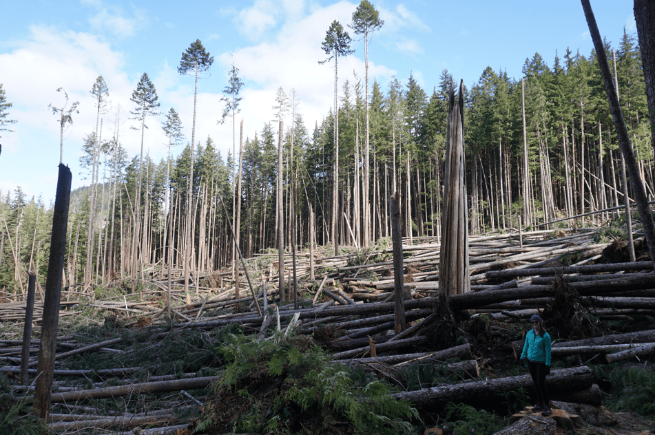 The trail to Bear Falls in Marble River Provincial Park – heavily damaged by a wind event in winter 2020/2021.