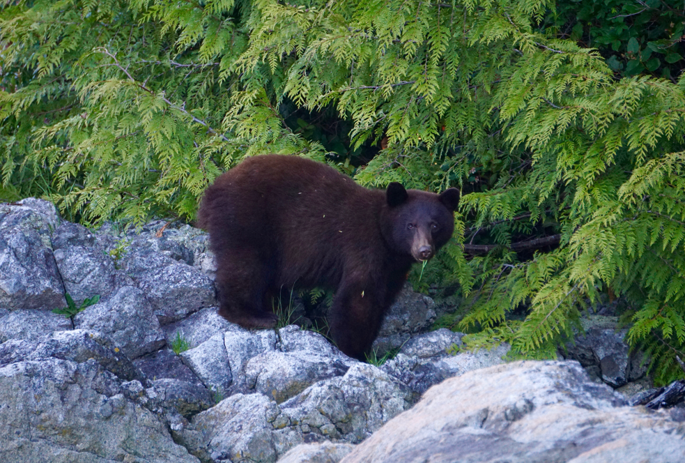 Assessing our intent! A massive black bear in Port Neville.