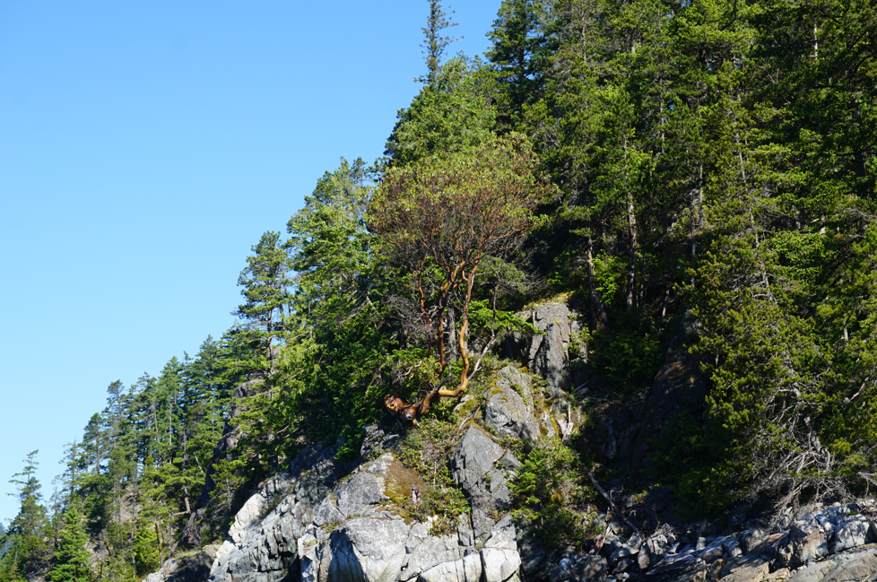 We found an arbutus tree near Whirlpool Rapids, a fair distance out of its supposed range. According to most texts, North Rendezvous Island is the northern extent.