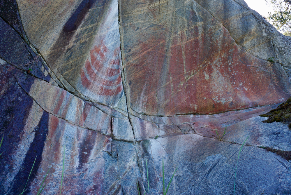 From here we searched 600m of beach and shore searching for the rock art – after 45 min we had found nothing! We had now paddled several hours of unremarkable shoreline and searched for nearly 2 hours to find no rock art. Disappointed, we headed back to the boats. I brushed aside some low hanging cedar branches, and wow!