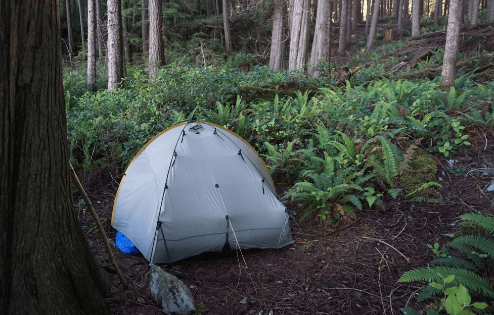 Comfy camping at Mount Milner after a bit of Sawyer Paddle gravel digging.