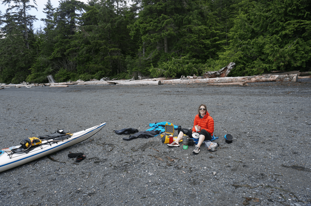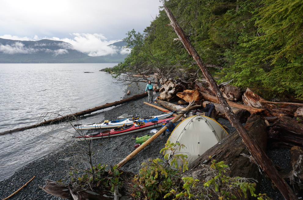 Beach camping in Johnstone Strait – cutting it close to hightide!