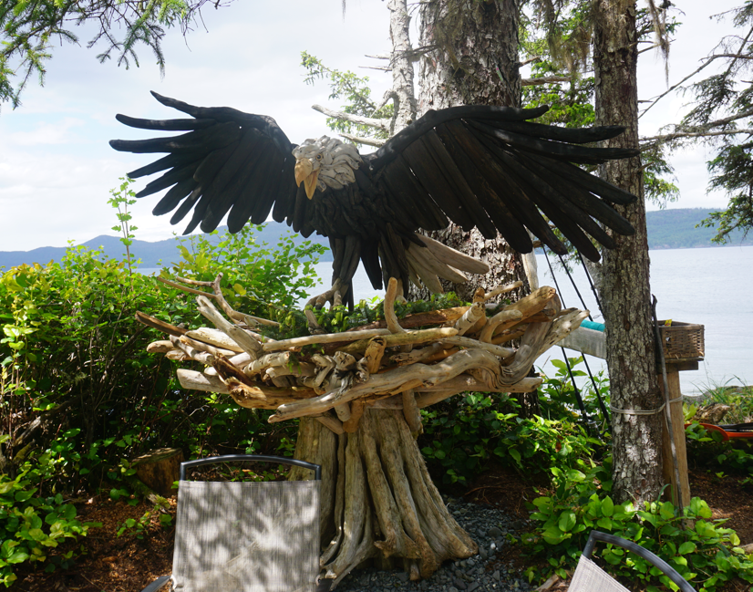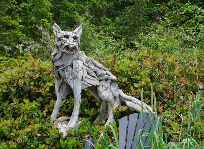 Driftwood art at Grey Wolf Expeditions Orca Camp.
