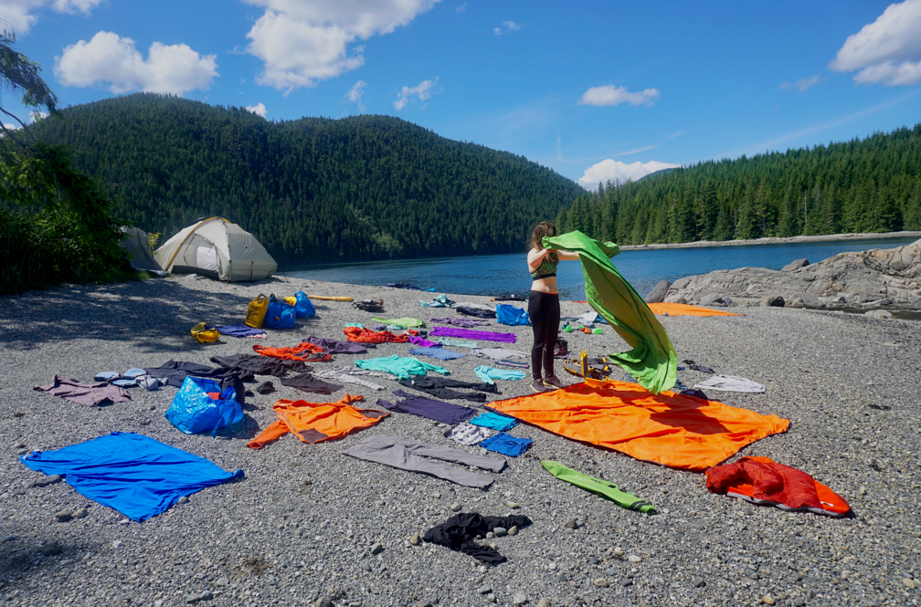 We paddled past Blind Channel and then ferried across the channel in some fun current. As soon as we reached the beach we yard-saled all our gear and consumed the entire beach! It was the first true sun we had experienced in days and we took full advantage to dry our somewhat smelly gear. Things dried very fast in the sun and after setting camp and repacking the gear, we threw on our best threads, brushed our teeth, and paddled over to the resort.