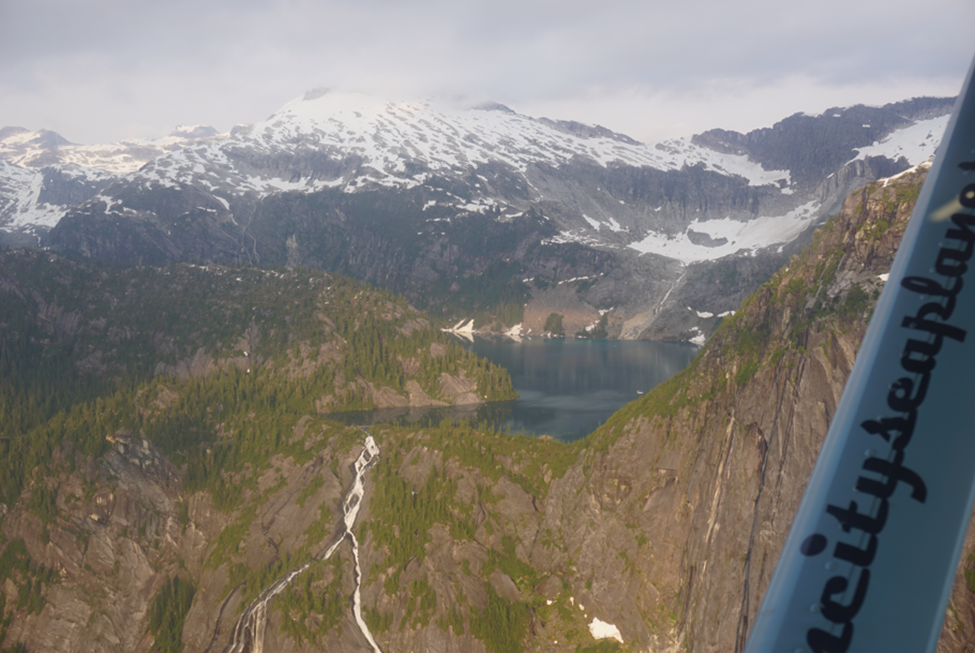 Peter showed his true hand though – as an extremely skilled pilot – as he dodged through clouds to follow the Daniels River valley to within 1 km of the lake. Dense fog and cloud sat low and clung to the vertical walls and there was no safe way through. Peter turned back and we agreed to be dropped on Cortes Island where we could reassess our plans.