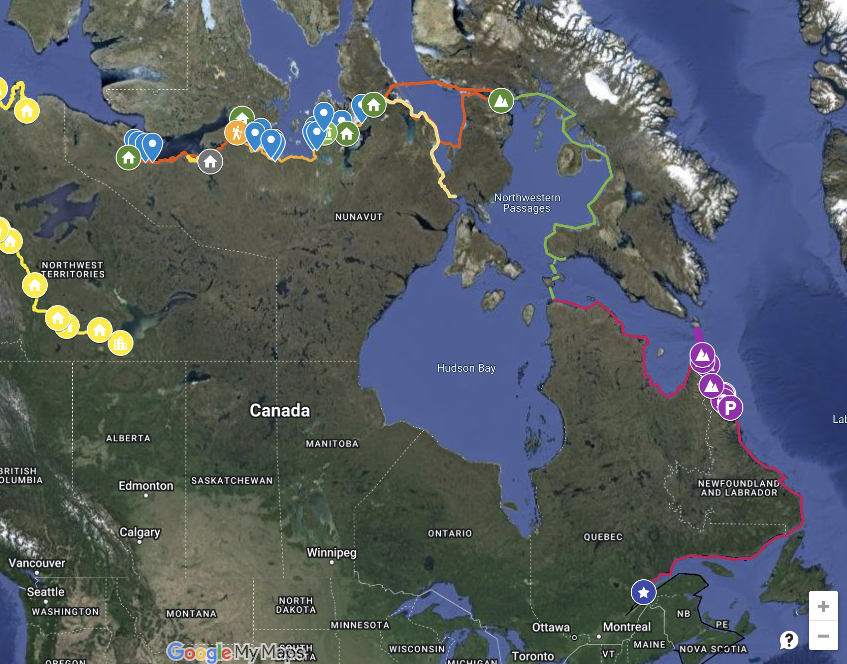 The image below was our intended route when we began in 2022. Somehow it grew from Hay River to Gjoa Haven to paddling all the way to Quebec! It was overly ambitious and after the first year we both doubted if we could make it all the way – or if we wanted to. We plan to return to finish our trip to Taloyoak and hope to paddle the Labrador Coast one day.